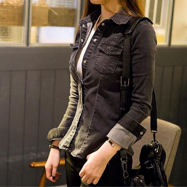 12번: 빼빼 여성용 카라넥 바스트 포켓 베이직 데님 셔츠 남방