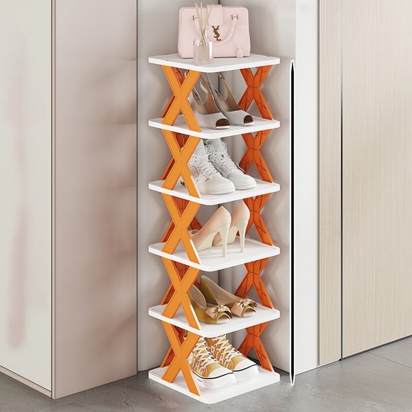 10번: 좁은 현관 슬림 신발 정리대 슈즈렉 틈새 신발장 슈즈 정리 수납 조립식 높이조절 수납장 운동화 서랍장 틈새장 폴딩 정리함 수납함 보관함, R99576O(6단 신발정리대-오렌지, 1개