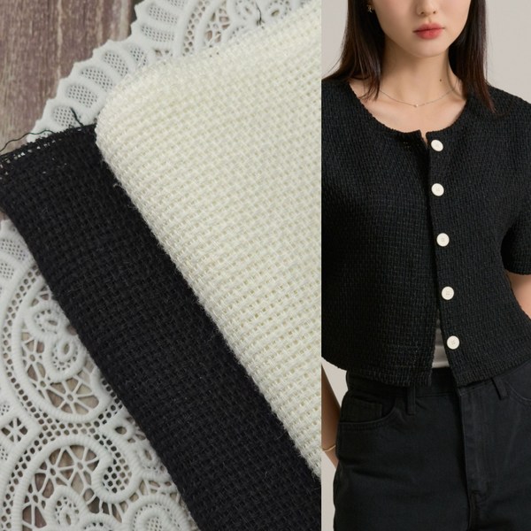 19번: 린넨트위드 커튼자켓의류원단 물랑2종, 블랙, 1개