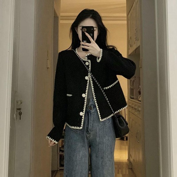 9번: 모직 자켓 트위드 여성 트위드셋업 점퍼 원단 가디건 코디