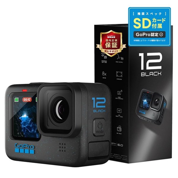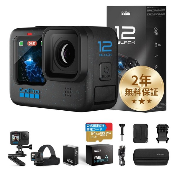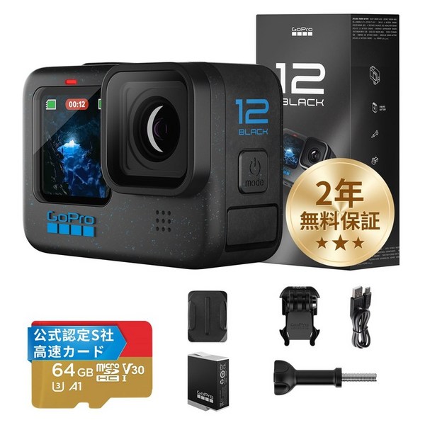 26번: [FW 버전 일본] GoPro HERO12 Black 고프로 고프로 액션 카메라 HyperSmooth 6.0 HDR 비디오 (2년 무료 보증 스포츠 만능 세트)