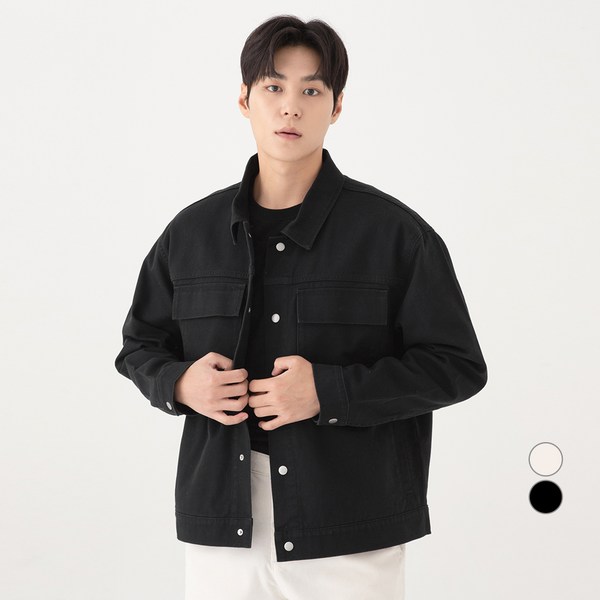 16번: 비켄드스튜디오 남성용 캐주얼 오버핏 면 코튼 투포켓 트러커 자켓 [1055]