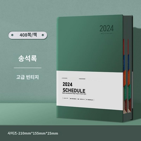 21번: 2024년 일정표 노트부 달력 메모장 비즈 오피스 365일 업무일지 학습시간 관리 매일 한 페이지 효율 책자 수첩 다이어리 맞춤, A5 송석그린-중성펜 1개 증정