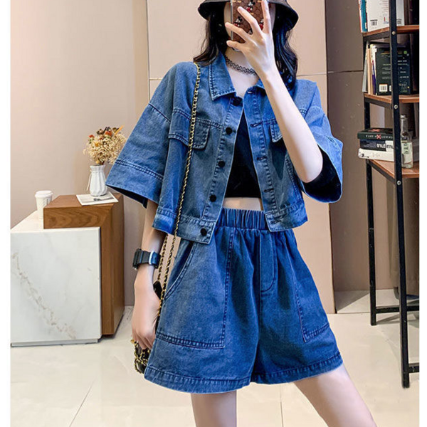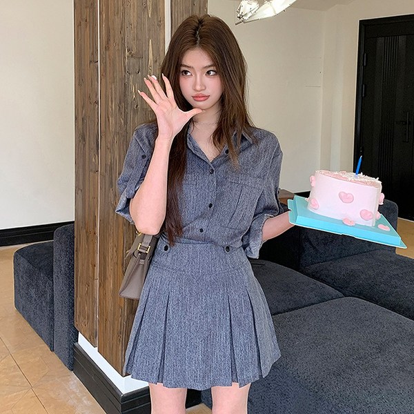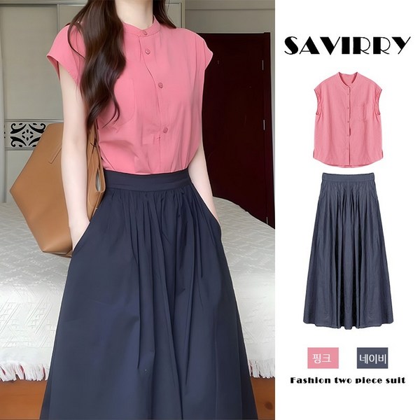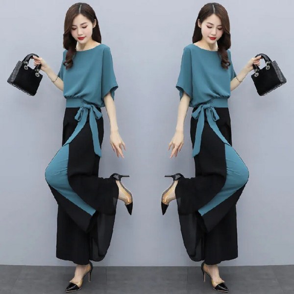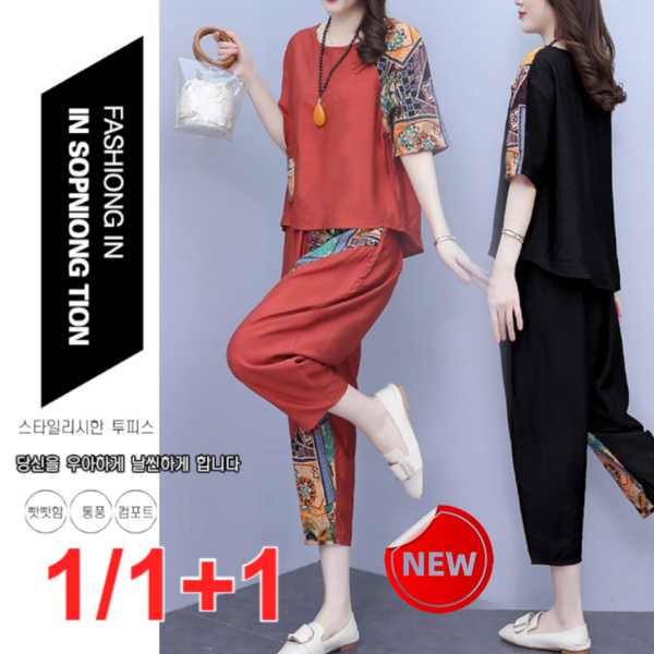 22번: [1/1+1]여성 반팔투피스 세트 코튼 리넨 캐주얼 반팔 배기바지 세트 편한 투피스 입체 슬림핏 재단키높이 /날씬해 보임아시아의 여성 체형을적합한 핏감 우아한 분위기