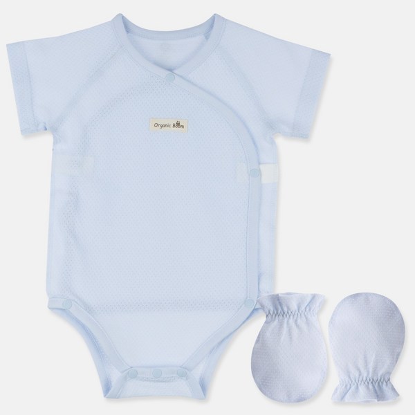 26번: 오가닉붐 유아용 매쉬 자카드 스냅 배냇 반소매 바디슈트 + 손싸개 세트