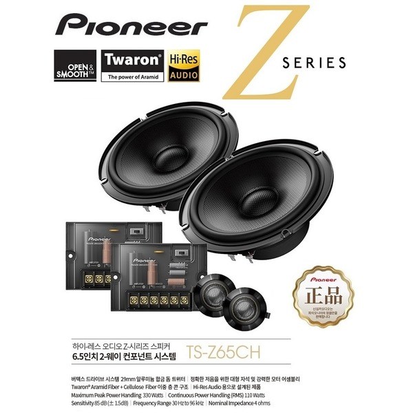 22번: 파이오니아 TS-Z65CH 하이레졸루션 카스피커 6.5인치급 2웨이 멀티타입 공식수입원 정품 수입