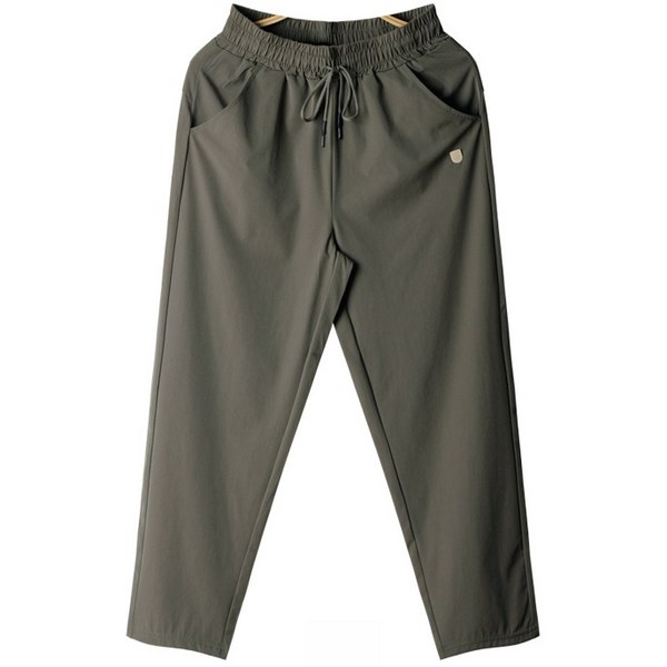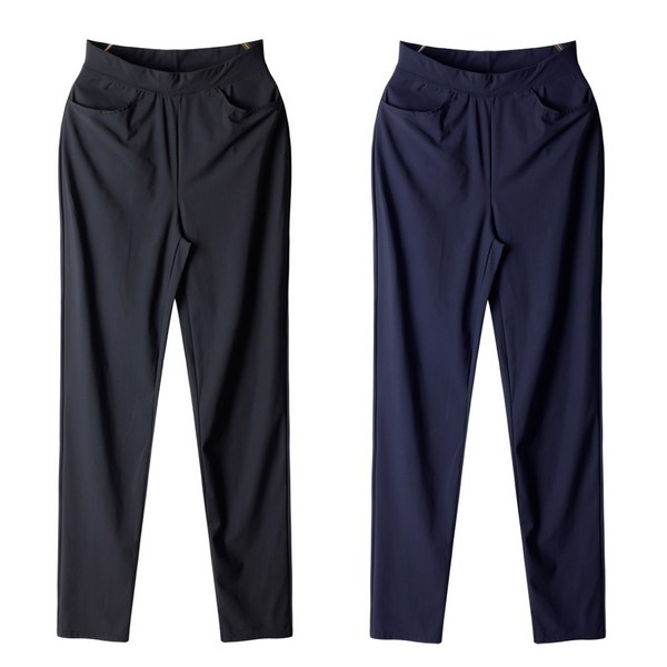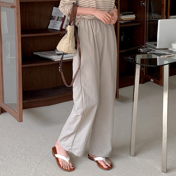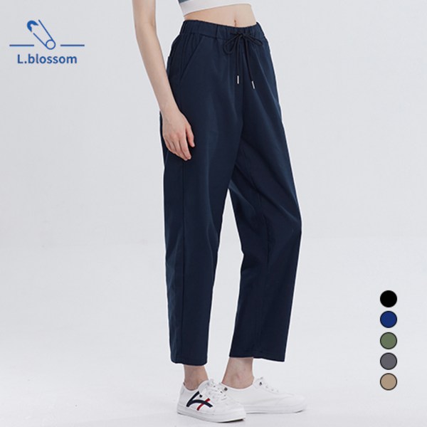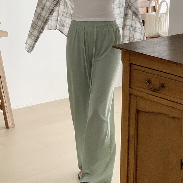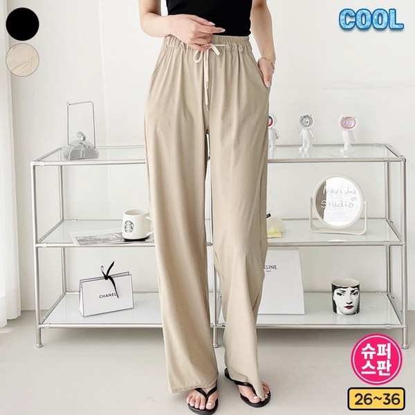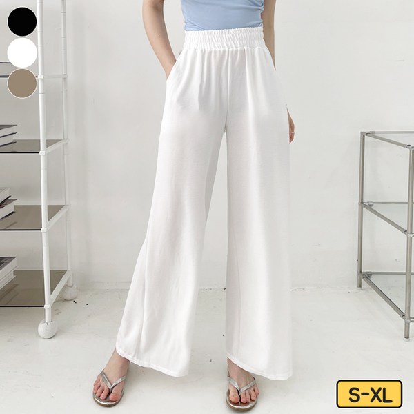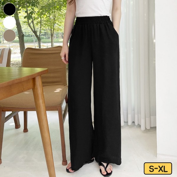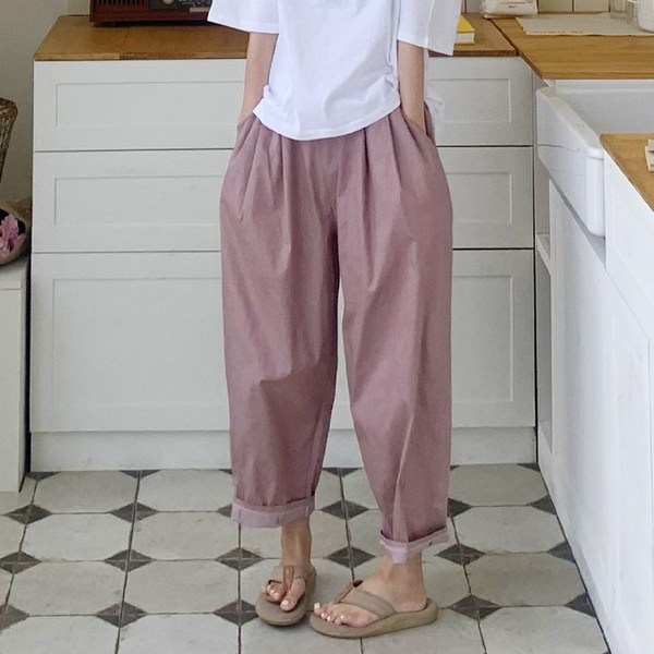 18번: besteffie 1+1 여성 바지 여름 순면 바지 하이웨스트 무지 루즈핏 와이드팬츠 벌룬팬츠 밴딩 중년여성 투피스 빅사이즈 엄마옷 여자 9부 바지 2P C58