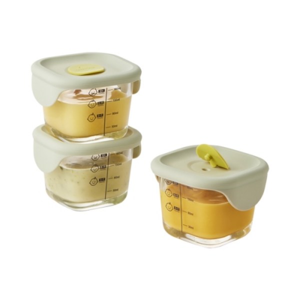 17번: 유아그릇 어린이그릇 이유식식기 실리콘얼음트레이 이유식통 유리 이유식 용기 210 3P 세트, 03 올리브