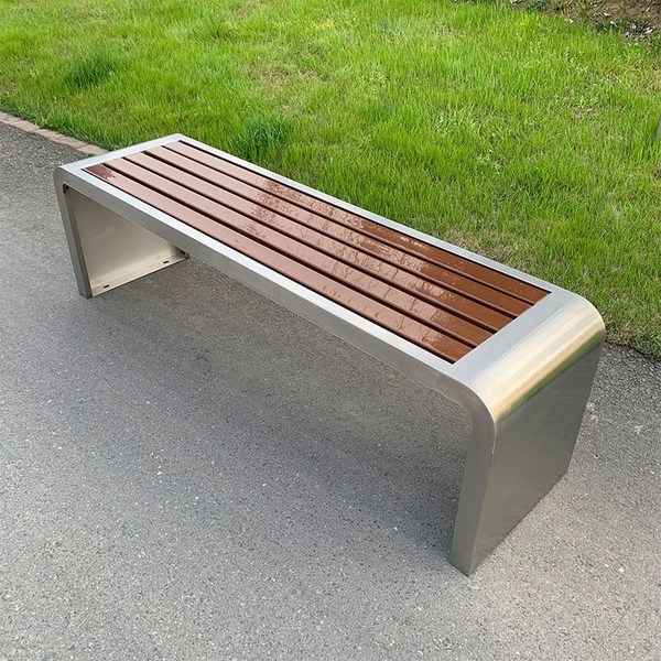 27번: 야외벤치 의자 철제 원목 테라스 정원 공원, 둥근 모양 가중 스테인레스 스틸 2 미터