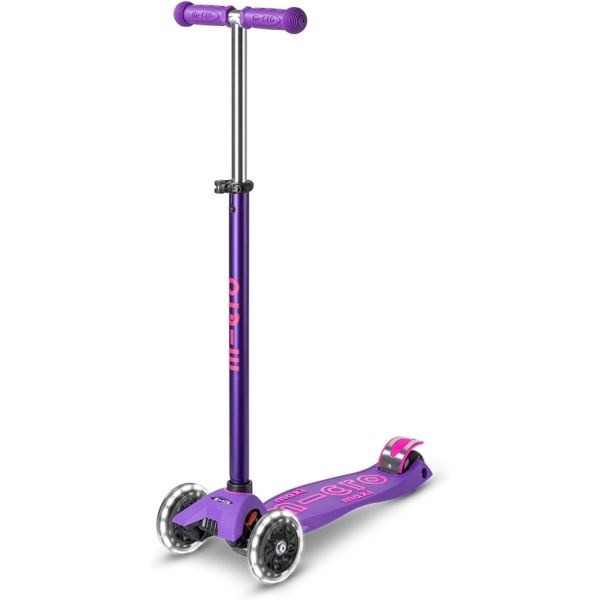 28번: 전기 스쿠터 전동스쿠터 마이크로 킥보드 – 맥시 디럭스 LED 5-12세용 모션 작동 라이트 업 휠이 있는 어린이용 세 개의 바퀴 린 투 스티어 스위스 디자인의 …, Purple