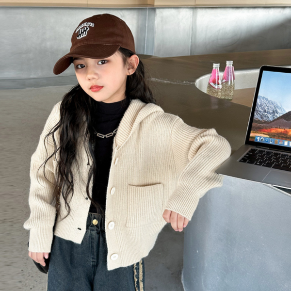 6번: 오렌지다몸 여아용 일자패턴 포켓 단추 후드 가디건