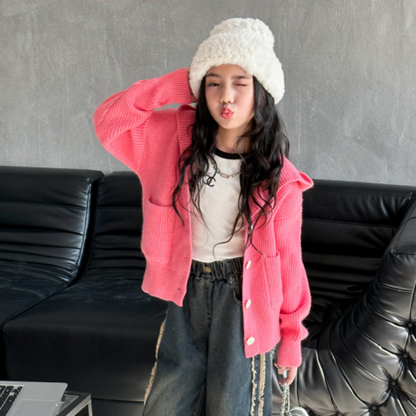 24번: 헤지스 키즈 소피아 니트 가디건 HSF11KC50M PK