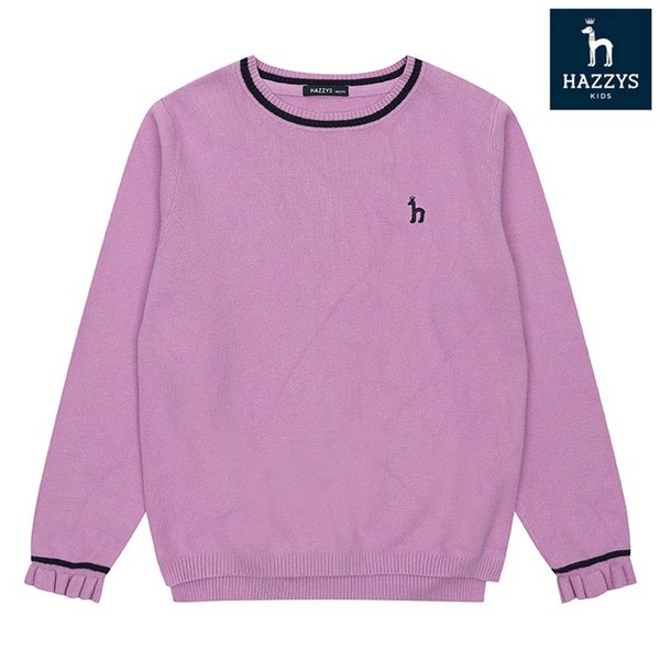 17번: 헤지스 키즈 라인 배색 라운드 니트 퍼플