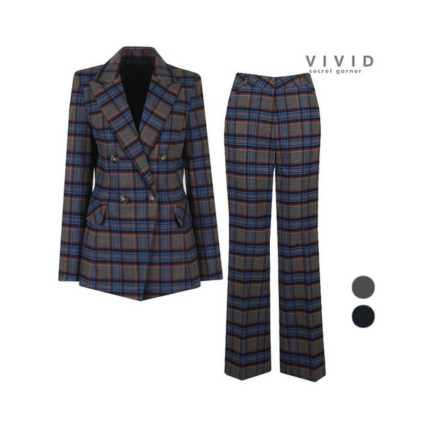 19번: 비비드시크릿가너 SET 여성 체크더블 가을겨울 정장자켓+세미부츠컷 세트