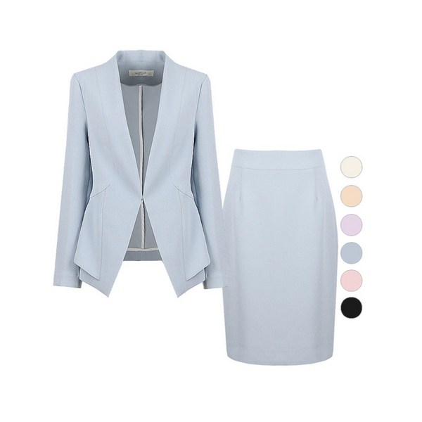 6번: [비비드 시크릿가너] SET 여성 노카라 파스텔 정장자켓+정장스커트 세트
