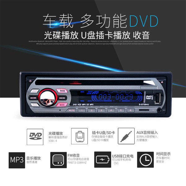 27번: 자동차 CD DVD 오디오 12V 24V 카오디오 승용차 트럭 차량용 블루투스 MP3 음악 재생 라디오, DVD 1564 12V, DVD디스크플레이어1564-12V