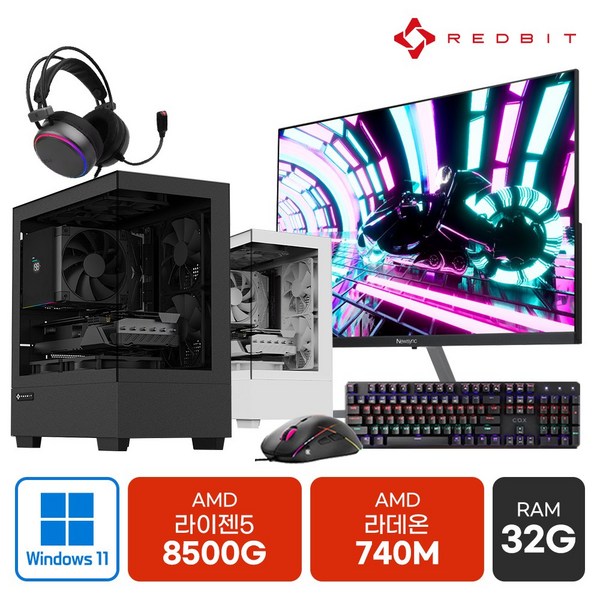 6번: 쌔빙PC 게이밍 풀세트 조립 컴퓨터 윈도우11 탑재 12세대 13세대 발로란트 배그 본체, 고급형(32G RAM+1TB NVME), GF08 + 27인치 165Hz, 32GB