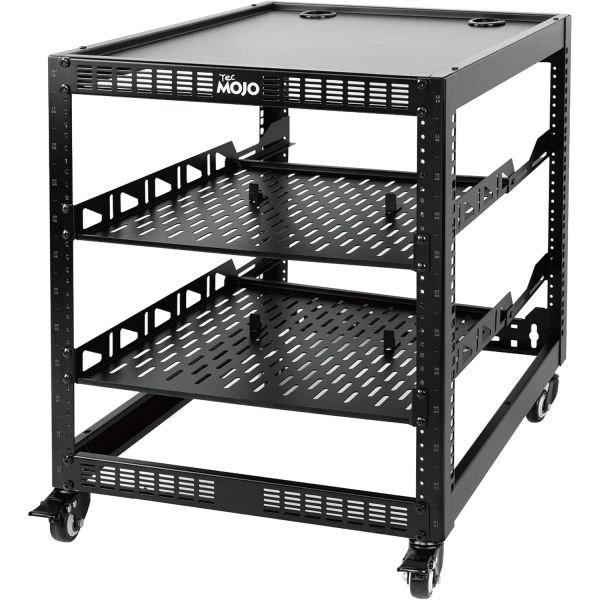 24번: Tecmojo PC 하드랙 하드랙케이스 데스크탑PC 서버 AV 장비용 12U 오픈 프레임 네트워크 랙 4 포스트바퀴 포함 모바일 랙PCS 2개 1U 선반 장착 하드웨어 19인치