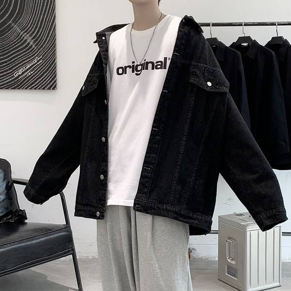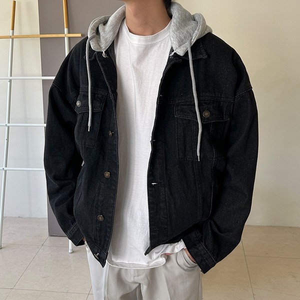 12번: 홈인박스 남자 청자켓 후드 탈부착 빅사이즈 오버핏 봄가을 블랙