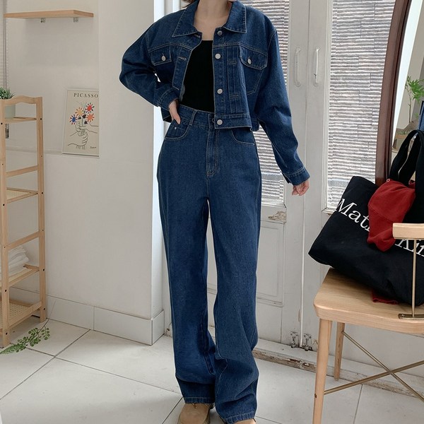 1번: [SET]논페이드 이염없는 생지 데님 자켓+와이드 데님(2color)