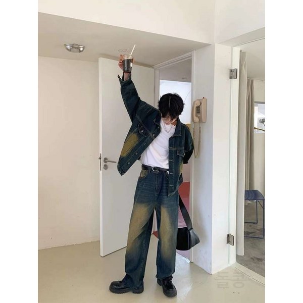 8번: Yanrz 남자 데님 세트 봄가을 청자켓+청바지 상하복 24M111