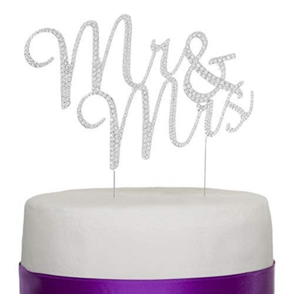8번: Ella Celebration Mr and Mrs Wedding Cake Topper Rh 엘라 축하 Mr and Mrs 웨딩 케이크 토퍼 라인스톤 모노그램 장식 케이크 토퍼 Mr, 1개, 108.86g