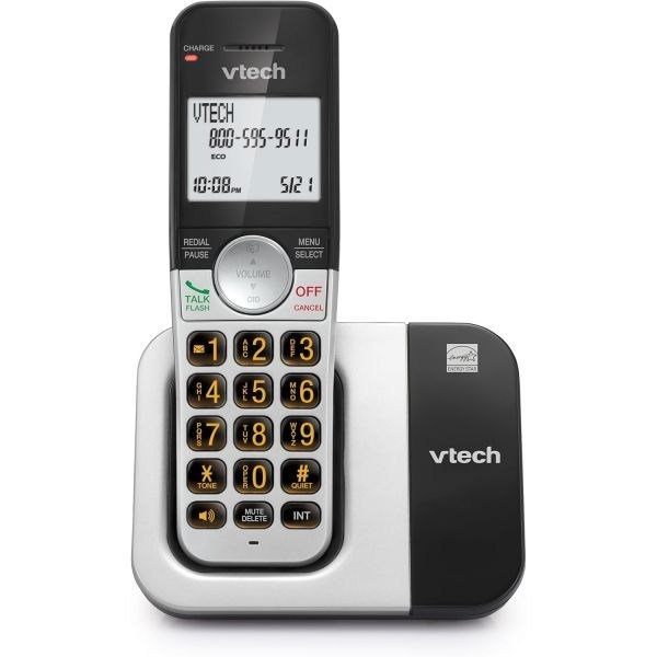 21번: 유선전화기 가정용 대형 디스플레이와 큰 버튼이 있는 VTech 무선 전화기 발신자 ID통화 대기 중인 DECT 6.0 전이중 스피커폰 ECO 모드 마지막 10자리 숫자 리다이얼, Caller ID_1 Handset, 1개