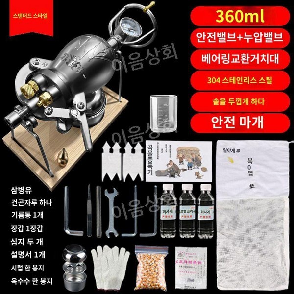 26번: 카토 304 스테인리스 가정용 대용량 뻥튀기 기계 안전 밸브 + 자동 압력 해제 밸브 설계, 360ml 전용 풀 세트