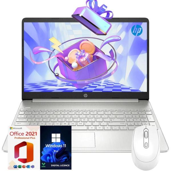 18번: HP 15.6 휴대용 터치스크린 노트북 – Windows 11 Pro 및 Microsoft Office 2021 HD 디스플레이 인텔 코어 i3-1215U(최대 4.4)GH, 16GB RAM | 512GB SSD