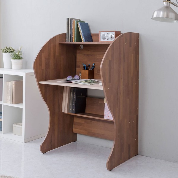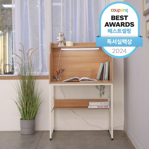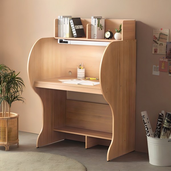 6번: 선반 컴퓨터 책상 올인원 LED 컴퓨터책상 게이밍책상 사무용책상 학생책상 서재책상 브라운/화이트 1인용 2인용 테이블 사이즈 120cm*60cm 고도 165cm, 브라운