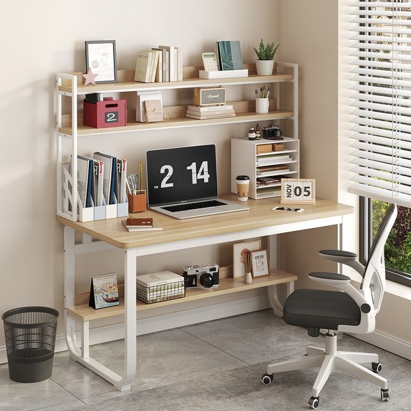 27번: 선반 컴퓨터 책상 올인원 컴퓨터책상 게이밍책상 사무용책상 학생책상 서재책상 타공판책상 브라운/화이트 1인용 2인용 테이블 사이즈 120cm*60cm 고도 165cm, 화이트