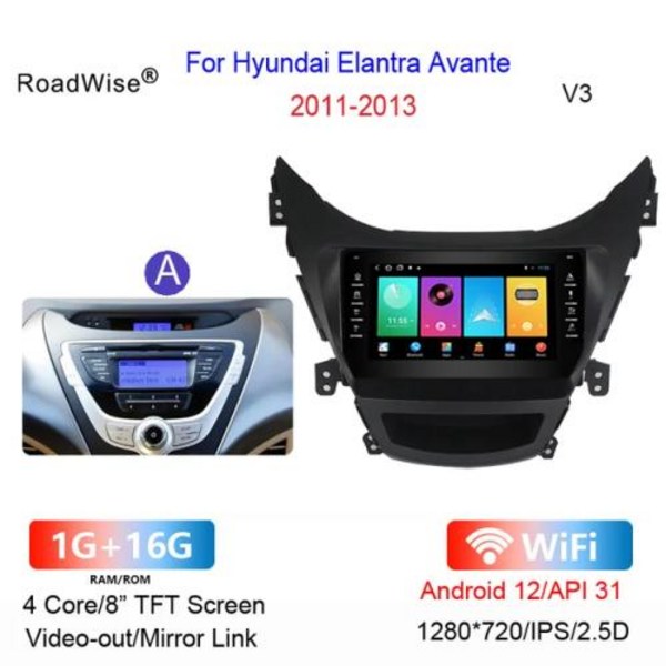 24번: 카플레이 Roadwise-2 Din 안드로이드 자동차 라디오 멀티미디어 현대 아반떼 MD I35 2011 – 2016 4G 와이파이 GPS DVD DSP 오토라디오, 없음, 1개