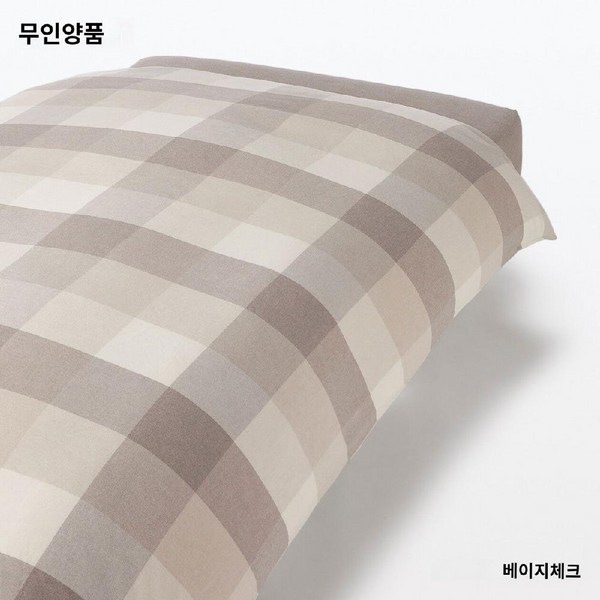22번: 무인양품 공식 더블 면 플란넬 덮는 이불 커버 190 210cm, 베이지 체크