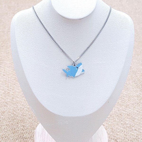 20번: 리나스마마 상어가족(컬러) 블루 목걸이 써지컬스틸 미아방지