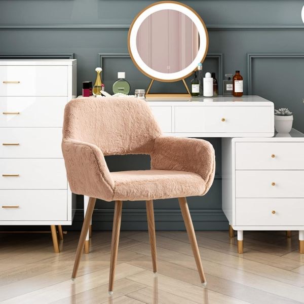 20번: 구익시 우아한 여성용 카멜 플러리 책상 의자 팔걸이가 있는 모던 인조 모피 베니티 의자 메이크업 거실용 메타 레그가 편안한 퍼지 홈 오피스 침실, A-camel 1