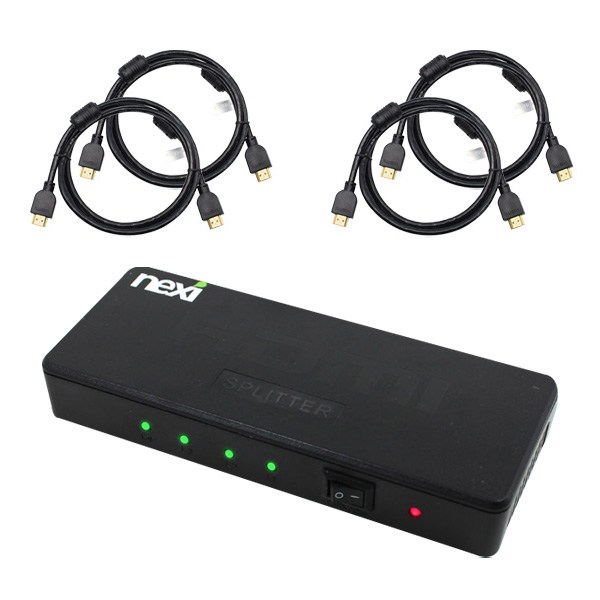 23번: 넥시 4K 1:4 HDMI 분배기 4포트 + v2.0 케이블 0.6m 2p + 1m 2p, 분배기(NX262), 케이블(NX-HD20006-SOHOT, NX-HD20010-SOHOT), 1개