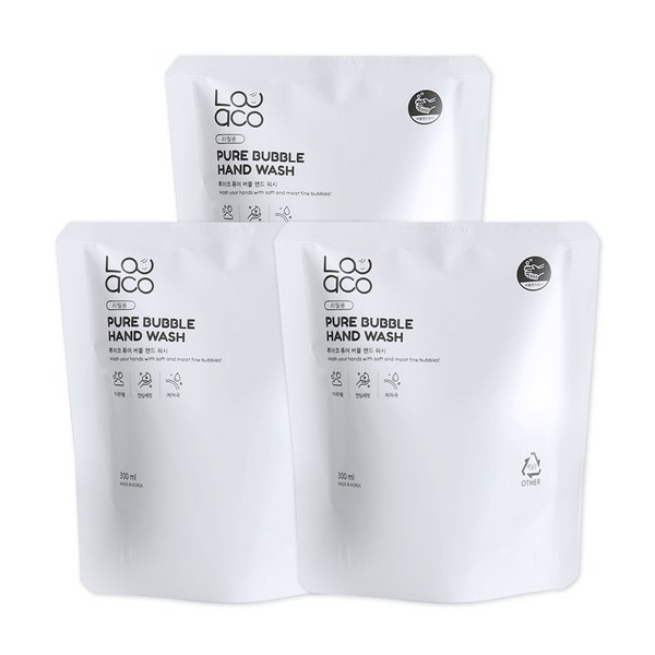 29번: 루아코 퓨어버블 핸드워시 거품형 아기 손세정제 리필, 3개, 300ml