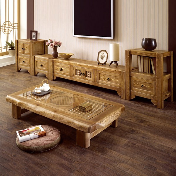 1번: 우리목 고거실장 4pc TV장문갑 원목가구, 단품