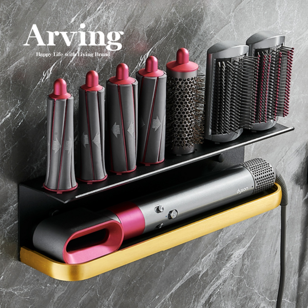14번: 다이슨에어랩거치대 다이슨드라이기거치대 보관 보관함 정리 에어스트레이트 정리함, 1개, 골드 블랙