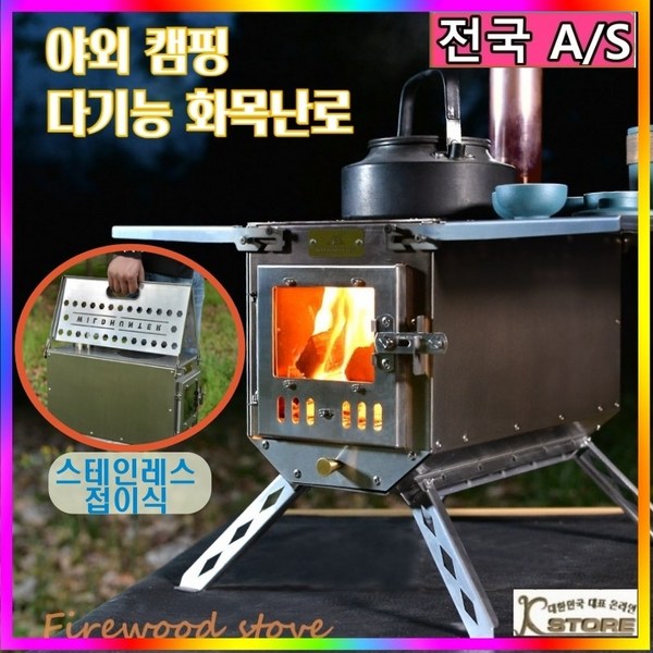 9번: K-STORE 캠핑난로 화목난로 이동식 접이식 펠릿난로 캠핑화목난로 벽난로 캠핑용난로 야외난로 접이식 휴대용 불멍