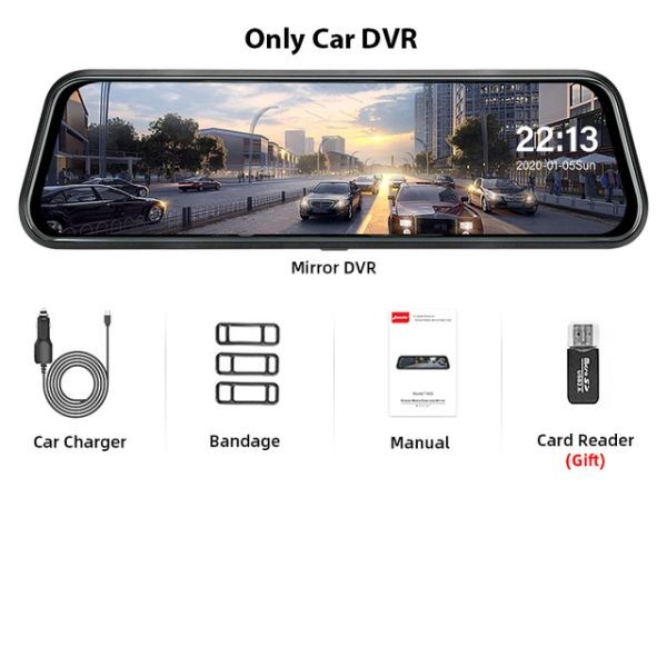 21번: 룸미러 후방 카메라 사이드 Jansite 10 인치 미러 2.5K + 1080P 자동차 DVR 스트림 미디어 슈퍼 나이트 비전 터치 스크린 대시 캠 주차 모드 레코더, Only Car DVR, None