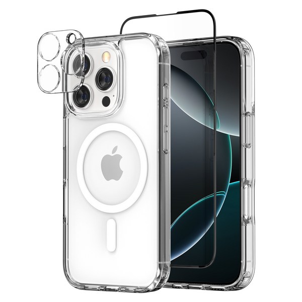 23번: 케이엠디자인 맥세이프 클리어핏 휴대폰 케이스+전면 강화유리필름+카메라 보호필름 풀세트