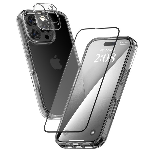 9번: 케이엠디자인 클리어핏 휴대폰 케이스+전면 강화유리+카메라 보호필름 세트