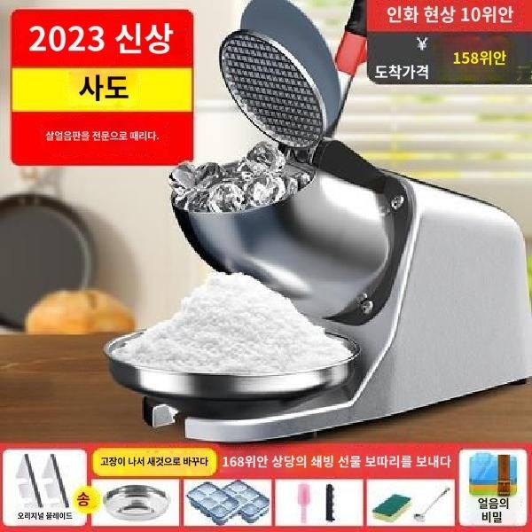 25번: Aiiyya 자동 눈꽃빙수기 키친 강력모터 안전칼날 가정 업소용 각얼음 빙수기 분쇄기, 6 칼날