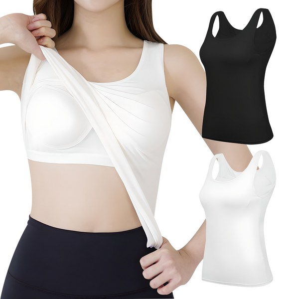 8번: 내장 브라 민소매 캡나시 캐미솔 화이트1+블랙1