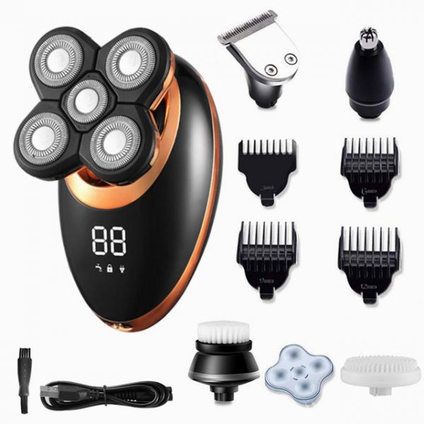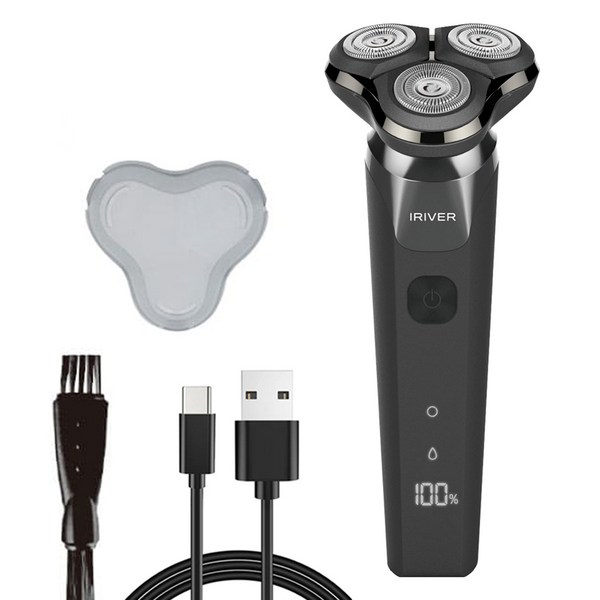 28번: LifeSync 전기면도기 남성용 수염 100 분 연속 가동 회전식 27 매 칼날 360회전 헤드 건습 겸용 USB 충전 IPX7 방수 물 세척 가능 잠금 기능 LCD 잔량 표시, 블루