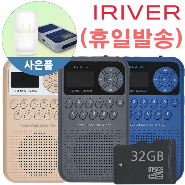 26번: 아이리버 라디오 플레이어 + 마이크로 SD 카드 32GB 세트, 블루, IRS-B202(플레이어)