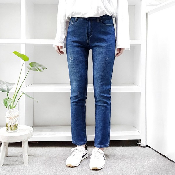 27번: 러블리 여성 하이웨스트 따듯한 융기모 데님팬츠 일짜 청바지 3색