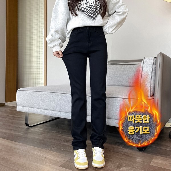 20번: 가비진 여성용 따뜻 기모 뒷밴딩 융털 데님 일자 청바지 팬츠