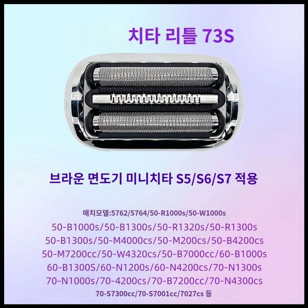 21번: 브라운 전기 면도기 호환 면도날 53B 시리즈5 시리즈6 칼날망 교체용 날망, 리틀치타73S커터헤드가 멘테넌스오일+브러쉬, 1개